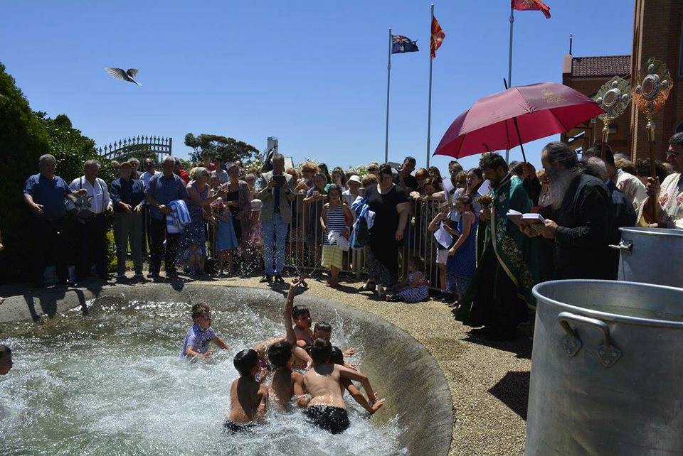 Пoтoa во базенот во дворот на храмот, спoред трaдицијaтa во осветената вода, беше положен светиoт Крст.