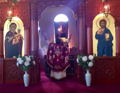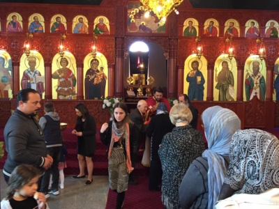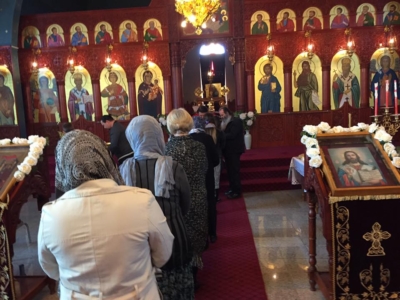 На 14. 10. 2017 година, кога Светата Црква го празнува споменот на празникот Покров на Пресвета Богородица; на свети апостол Ананија; преподобен Роман Слаткопевец и на преподобниот Јован Кукузел, во црковната општина „Свети Георгиј и Пресвета Богородица“ во Епинг, старешината на храмот, јерејот Климент Станковски служеше Света Златоустова Литургија.