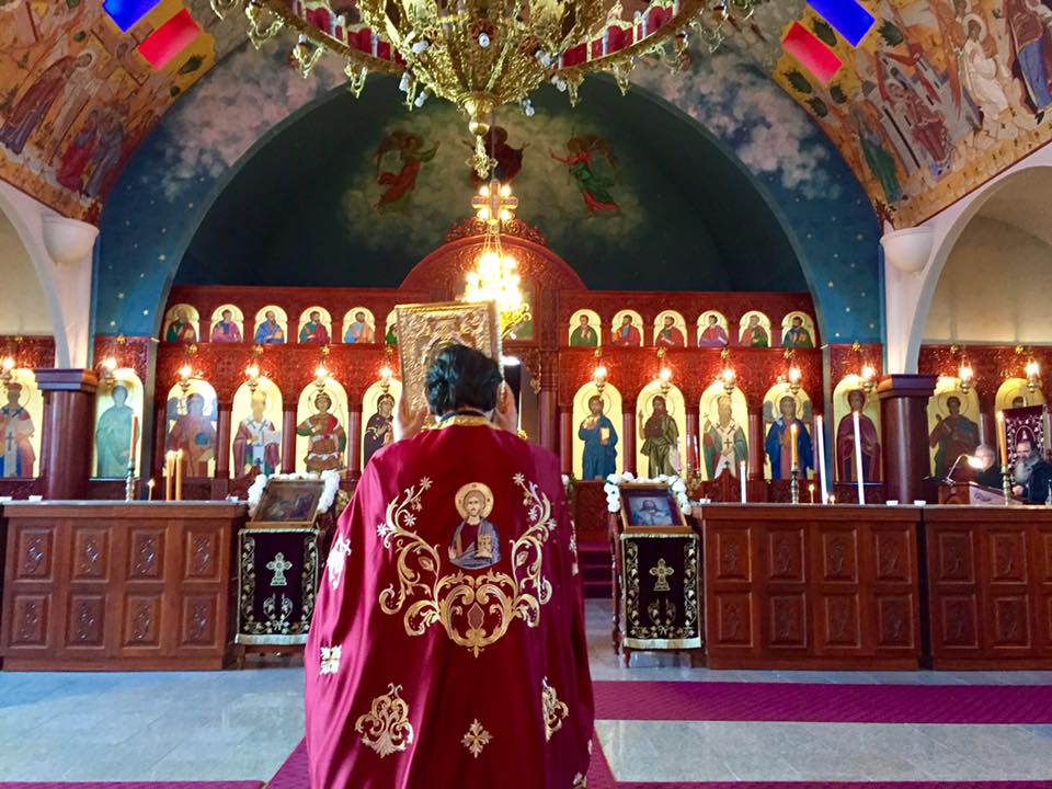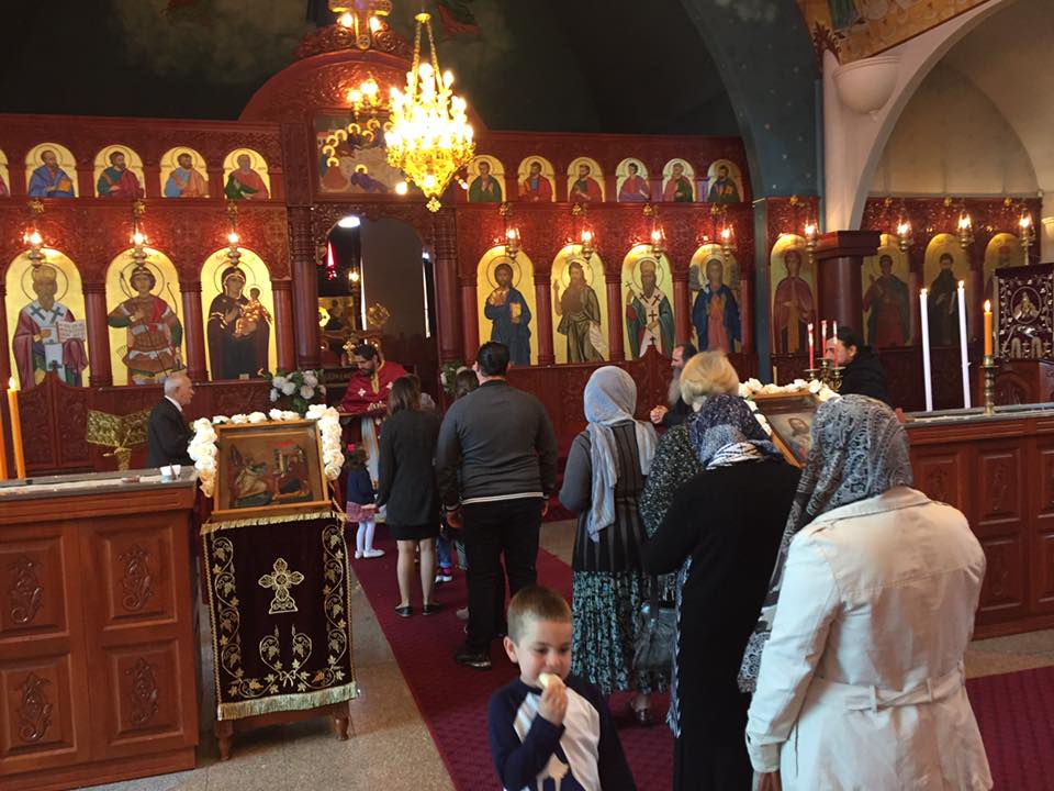 На 14. 10. 2017 година, кога Светата Црква го празнува споменот на празникот Покров на Пресвета Богородица; на свети апостол Ананија; преподобен Роман Слаткопевец и на преподобниот Јован Кукузел, во црковната општина „Свети Георгиј и Пресвета Богородица“ во Епинг, старешината на храмот, јерејот Климент Станковски служеше Света Златоустова Литургија.