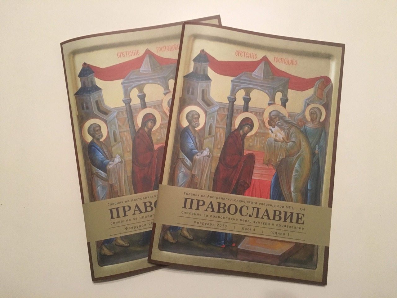 И ова ново 2018 лето Господово сме заедно со вас. Со Божја помош стигнавме до четвртиот број на епархискиот гласник на Австралиско-сиднејската епархијана МПЦ – ОА, „Православие“. Овој број на црковниот гласник е посветен на празникот Сретение Господово.Сретение е празникот од каде потекнува зборот „среќа“. Сретението, средбата, среќавањето со Бог е вистинската среќа. Светиот Симеон триста години го чекал тој момент кога Го сретнал Бог и Го зел во своите раце. Ние не требаше да чекаме толку многу, туку само три месеци за повторно да се сретнеме со новиот број на „Православие“ и го земеме во нашите раце. Искрено се надеваме дека и овој број ќе ви донесе вистинска среќа и сретение со Бога.