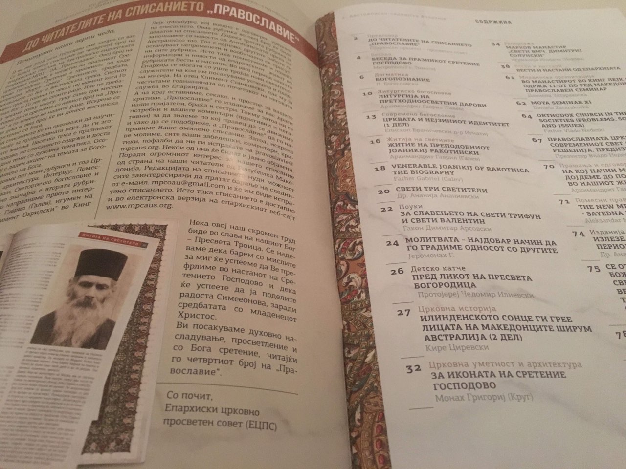 На крај, на Редакцијата на списанието „Православие“ им честитаме и им посакуваме уште плодна и успешна работа во иднина и годините и списанијата да се множат.