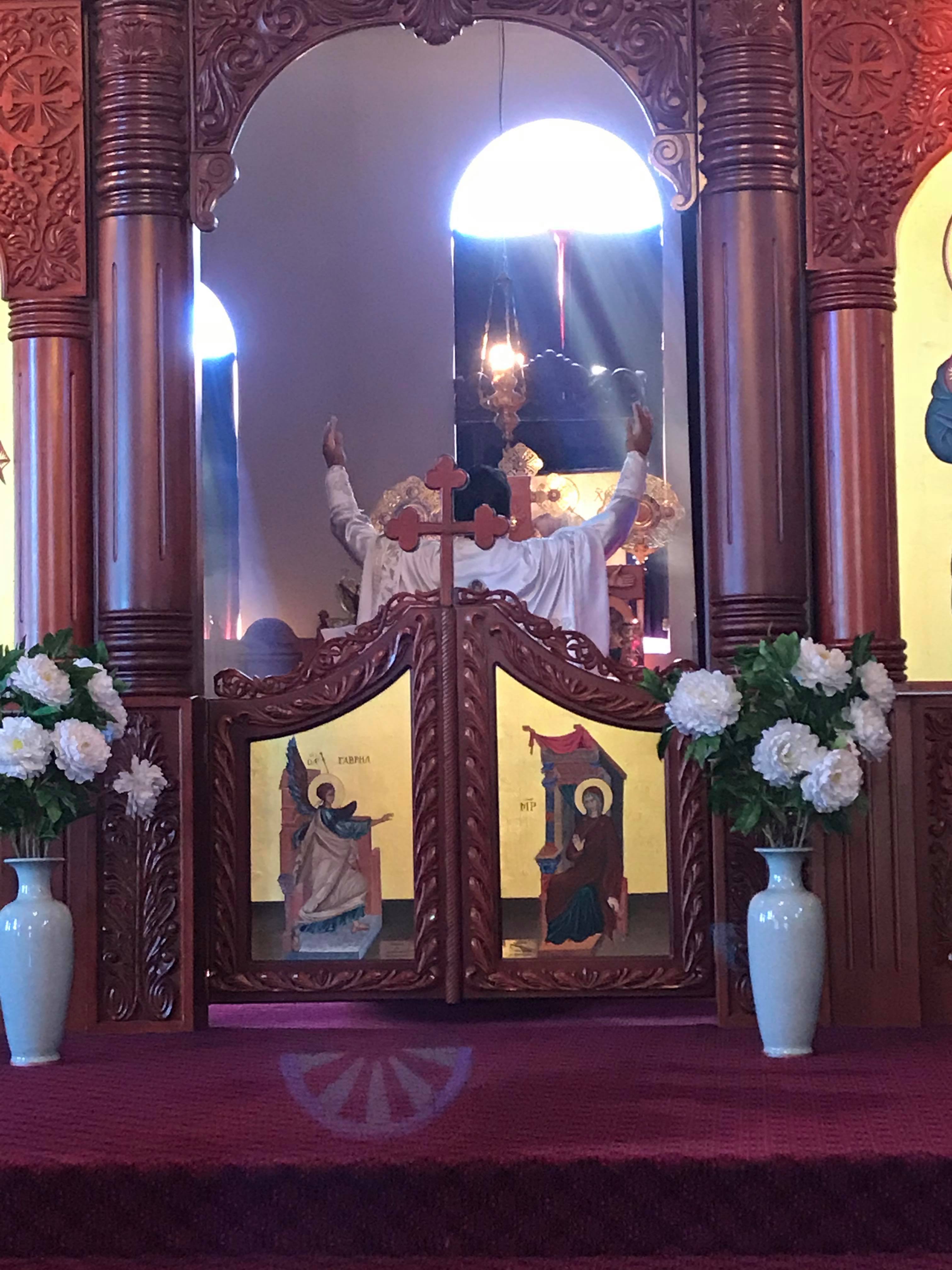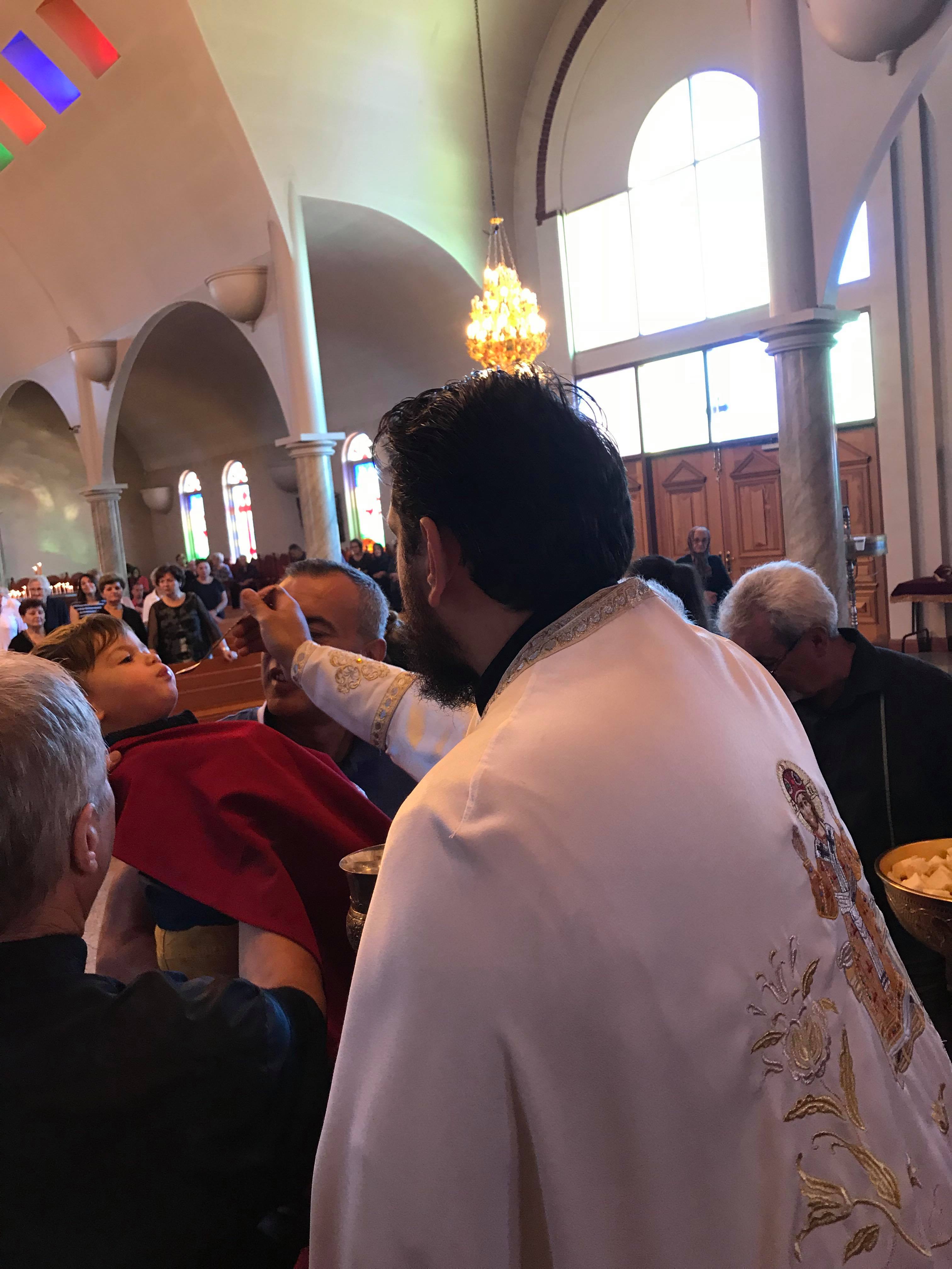 На 04. 02. 2018, во Неделата на блудниот син, кога Светата Црква ги празнува Собор на руските новомаченици и исповедници; Светиот апостол Тимотеј; Преподобниот маченик Анастасиј, во црковната општина „Свети Георгиј и Пресвета Богородица“ во Епинг, старешината на храмот, јерејот Климент Станковски служеше Света Златоустова Литургија.