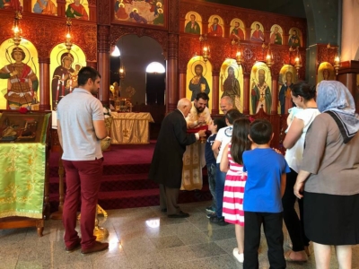 На 21. 01. 2018, во неделата по Богојавление, кога Светата Црква ги празнува Свети Григориј, епископ Охридски; Светите маченици Јулијан и Василиса; Преподобен Георгиј Хозевит и Света Домника, во црковната општина „Свети Георгиј и Пресвета Богородица“ во Епинг, старешината на храмот, јерејот Климент Станковски служеше Света Златоустова Литургија.