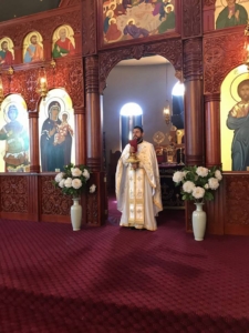 На 28. 01. 2018, во неделата на митарот и фарисејот, кога Светата Црква ги празнува Преподобен Павле Тивејски; Преподобен Јован Кушчник (Колибар); Преподобен Гаврил Лесновски и Светиот маченик Пансофиј, во црковната општина „Свети Георгиј и Пресвета Богородица“ во Епинг, старешината на храмот, јерејот Климент Станковски служеше Света Златоустова Литургија.