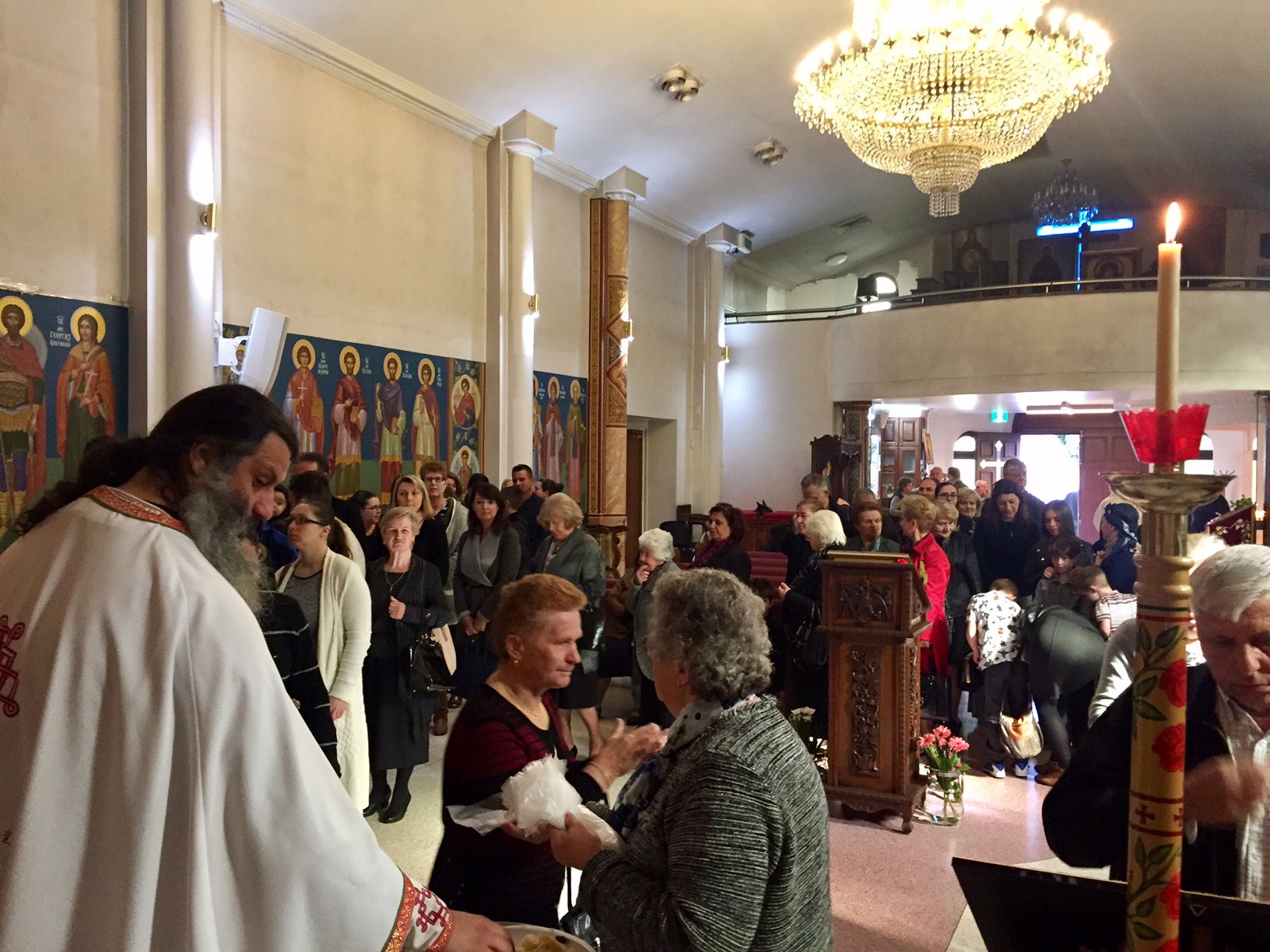 На 30. 07. 2017 година, во 8 – тата недела по Педесетница, кога го празнуваме споменот на светата вмч-ка Марина (Огнена Марија) и на преподобниот Леонид Устнедумски, во црковната општина „Света Петка“ во Рокдејл, игуменот Гаврил (Галев) служеше Света Златоустова Литургија.