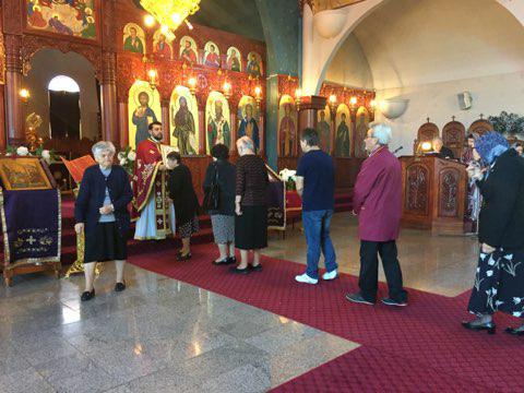 На 04. 03. 2018 година, во втората недела од Великиот пост – Неделата на свети Григориј Палама, кога Светата Црква ги празнува светите апостоли Архип, Филимон и Апфија, во црковната општина „Свети Георгиј и Пресвета Богородица“ во Епинг, старешината на храмот, јерејот Климент Станковски служеше Света Василиева Литургија.