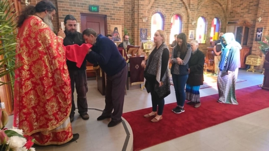 По Литургијата, Архимандритот Гаврил (Галев) ја изврши првата Крштевка во манастирот.
