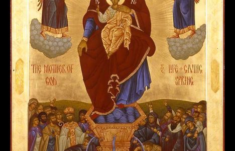 Во Цариград во V век, во близина на таканаречената „Златна Порта“ постоело место полно со кипариси и чинари, уште одамна посветено на Пресвета Богородица. Во шумичката постоел извор, исто така одамна познат како источник на чуда. Со текот на времето местото обраснало со грмушки, а водата исчезнала во калта. Само влажноста на земјиштето навестувала дека постои извор. Еднаш војникот Лав Маркел минувајќи низ тоа место наишол на беспомошен патник, слеп …