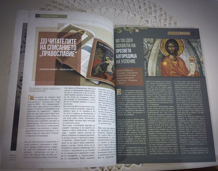 Повторно, по милоста Божја Ве информираме дека со благослов на нашиот надлежен епархиски архиереј, Неговото Високопреосвештенство, Митрополитот Дебарско – кичевски и Администратор Австралиско – сиднејски г. Тимотеј – излезе од печат веќе вториот број од епархискиот гласник на  Австралиско – сиднејска епархија при МПЦ-ОА – списанието „ПРАВОСЛАВИЕ“.