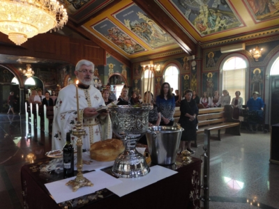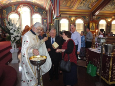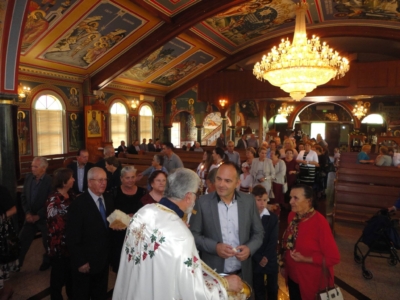 Прославата започна во Црквата. Многуброен народ ја посети нашата црква, каде што нашиот парохиски свештеник – Архиерејскиот заменик на Австралиско-сиднејската епархија, протојереј отец Станко Јовановcки чиноначалствуваше со Светата Божествена Литургија.