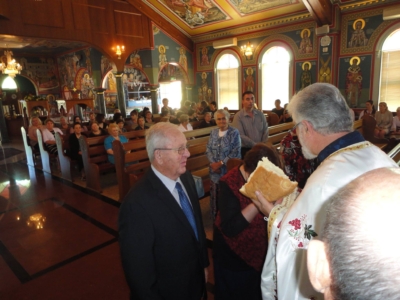 По Светата Литургија беше осветена Света Вода и Славскиот Колач беше прекршен. Македонската православна црквовна општина (МПЦО) „Свети Никола“ би сакала да му изрази благодарност и честитки нa Васил и Рини Алабаков со нивната фамилија за Кумството во 2017 лето Господово , а исто така им честита на Методија и Нада Трајковски со нивнaтa фамилија за преземање на Кумството во 2018 лето Господово. Господ Исус Христос , Мајката Божја и нашиот Патрон Св. Никола, да бидат со сите вас. Се молиме раката Господова да ве води по Неговите патишта и Неговото слово и да бидете здрави и живи многу години – Многаја Лета!