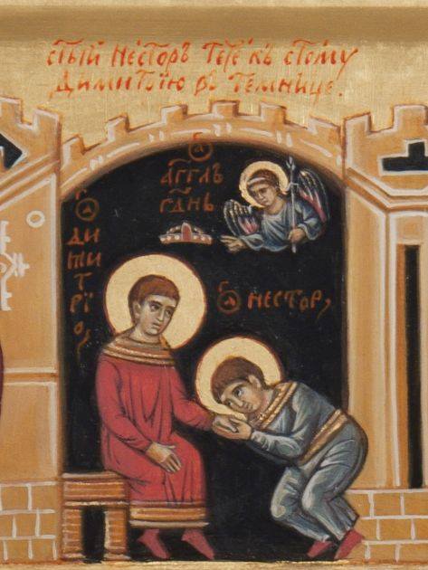 The very first pages of the Russian Primary Chronicle, as foreordained by God, is bound up with the name of the holy Great Martyr Demetrius of Thessalonica. The Chronicle relates that when Oleg the Wise threatened the Greeks at Constantinople (907), the Greeks became terrified and said, “This is not Oleg, but rather St Demetrius sent upon us from God.” Russian soldiers always believed that they were under the special protection of the holy Great Martyr Demetrius. Moreover, in the old Russian barracks the Great Martyr Demetrius was always depicted as Russian. Thus this image entered the soul of the Russian nation.