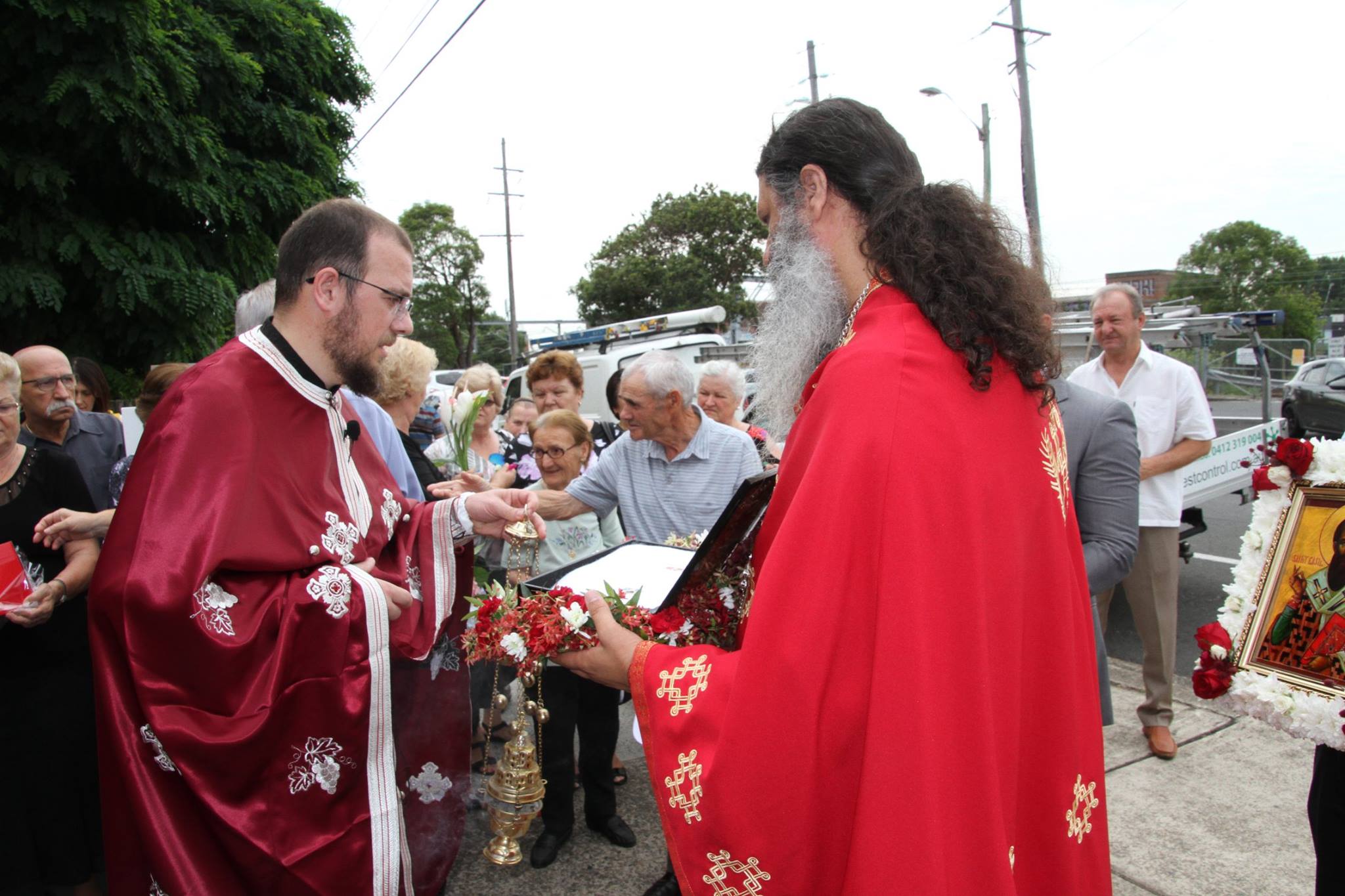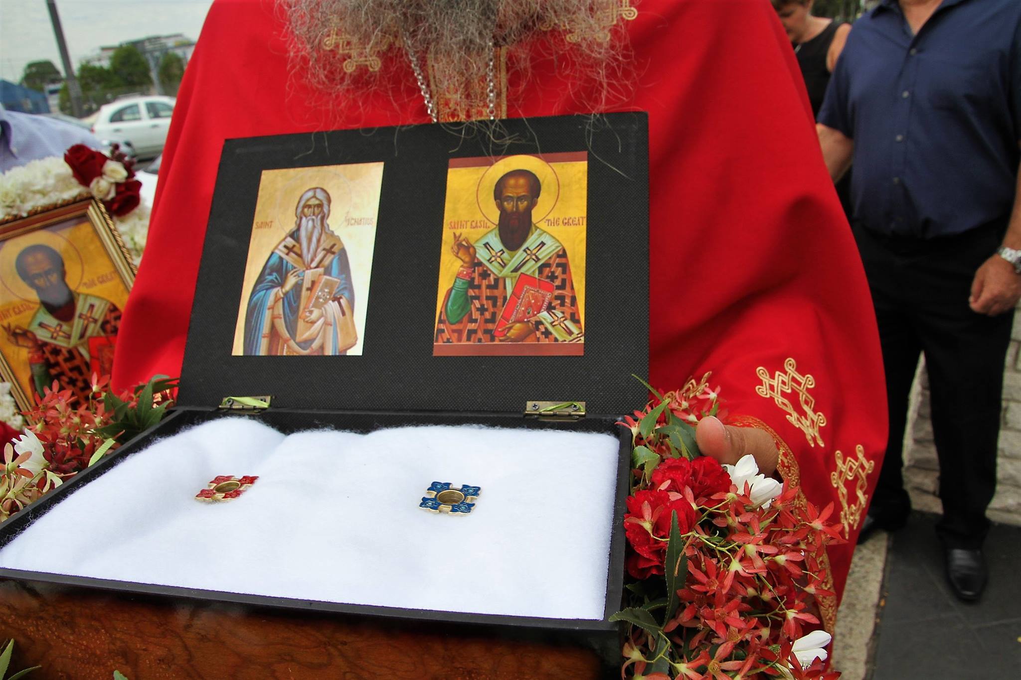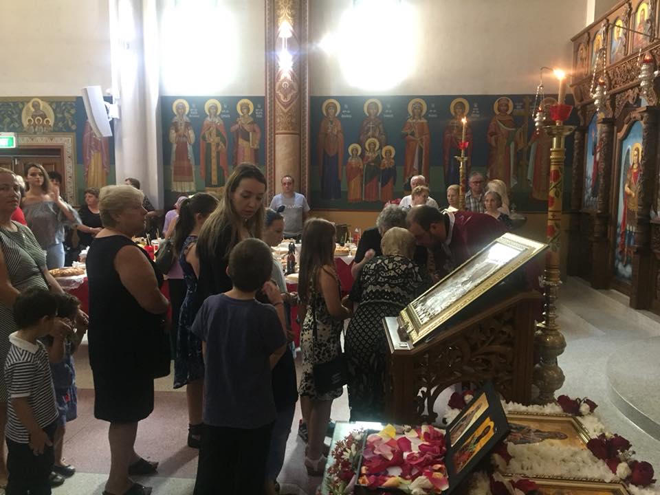 Свештенството заедно со верниот народ пред почетокот на Литургијата свечено ги пречекаа светите нетлени мошти од свети Игнатиј Богоносец и на свети Василиј Велики, кои ги испрати сестра Илијана (Илкова), игуманија на Марковиот манастир од Македонија, за добриот прием, кој го имаше пред неколку месеци кога беше во посета на Сиднеј.