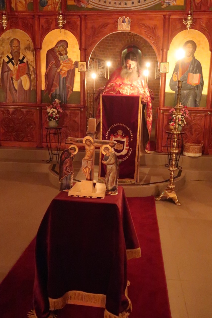 На 05. 04. 2018 година, во Светиот и Велики четврток од Страсната седмица, во манастирот „Свети Климент Охридски“ во Кинг Лејк, архимандритот Гаврил (Галев) отслужи утрена богослужба со читање на 12 евангелија за Христовите страдања и го изнесе Распетието Христово.