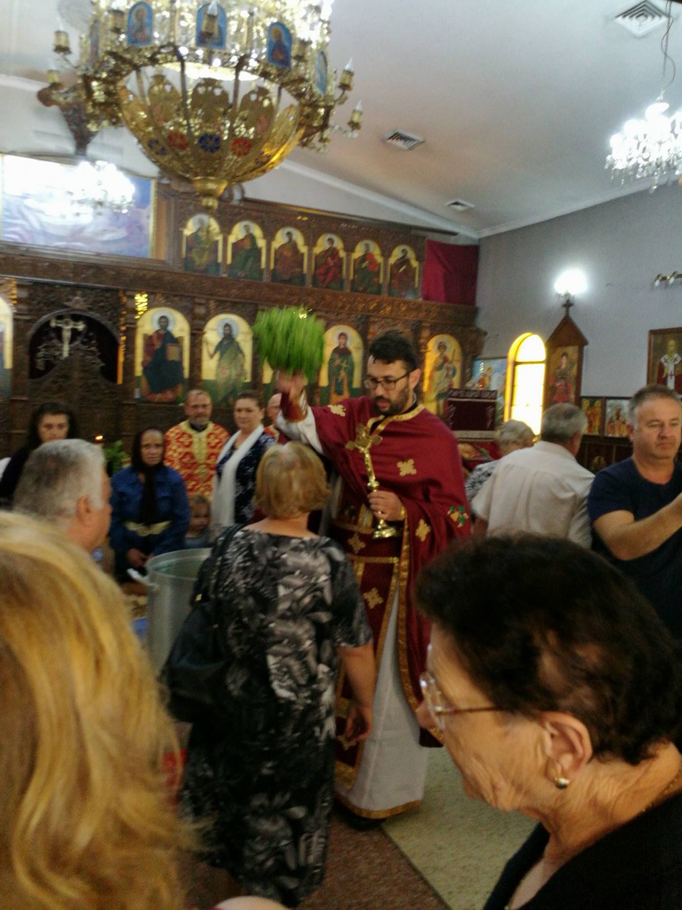 На 18. 01. 2018, кога Светата Црква го празнува празникот +Водокрст и споменот на Преподобната мајка Синклитикија; Светиот свештеномаченик Теопемт и маченикот Теона; Светиот пророк Михеј I; Преподобна Аполинарија, во црковната општина „Свети Никола“ во Кабрамата, протојереј-ставрофор Ѓоргија Лапоски во сослужение на протојереј Александар Ивановски и на старешината на храмот, презвитерот Игор Младеновски, служеше Царски часови и Света Василиева Литургија.