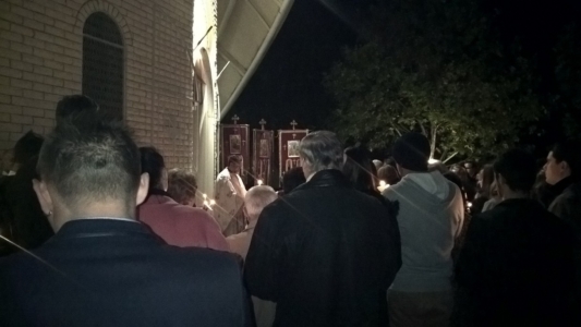 На 16. 04. 2017 година, во црковната општина „Свети Климент Охридски“ во Канбера, старешината на храмот јереј Радојчо Митрев го објави светлото Христово Воскресение и служеше Света Златоустова Литургија.