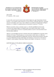 По повод упокоението на нашиот надлежен архиереј, Митрополитот Тимотеј, меѓу големиот број телеграма добиени од страна на црковните општини, до Епархискиот управен одбор на нашата Австралиско-сиднејска епархија пристигна телеграма со сочуство од страна на Митрополитот Австралиско-новозеландски г. Силуан од Српската епархија Австралиско-новозеландска со седиште во Сиднеј.