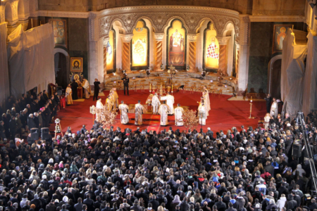Евхаристијата е соборна тајна, тајна на мирот и на љубовта, и затоа е тајна на единството. Mysterium pacis et unitatis nostrae, според изразот на блажениот Августин. Тоа е Вечера на љубовта. Како што навистина Тајната Вечера била Вечера на љубовта кога Господ им го открил и им го покажал на учениците „најдобриот пат“, совршен во љубовта – по ликот на Неговата љубов: „Како што Ја ве возљубив, така и вие да се љубите еден со друг“ (Јован 13, 34). И повеќе од тоа – по ликот на Троичната љубов: „Како што Ме возљуби Отецот, и Јас ве возљубив вас. Останете во Мојата љубов!“ (Јован 15, 9). Заповедта за љубовта Господ ја води кон тајната за Троичното единство – зашто таа тајна е љубов: „И тоа име на Бога му е поугодно од кое било друго име“, забележува свети Григориј Богослов. Заклучувајќи ја Својата проштална беседа со првосвештеничка молитва, Спасителот се моли за соединување и единство на верниците во Него: „за да бидат сите едно, како што си Ти, Оче, во Мене, и Јас во Тебе; па така и тие да бидат во Нас едно… Јас сум во нив и тие се во Мене, за да бидат во сѐ едно…“ (Јован 17, 21-23). За нас, разделените и одделени, тоа соединување по ликот на Троица, едносуштна и неразделива, е можно само во Христос, во Неговата љубов, во единството на Неговото Тело, во заедницата на Неговата Чаша. Во единството на соборната Црква таинствено се одразува Троичната едносушност, и по ликот на Троичната едносушност и кружењето на Божествениот живот во мноштвото верници се одразува една душа и едно срце[2]. Тоа свое единство и соборност Црквата го препознава и го остварува (осуштествува) пред сѐ во евхаристиското таjнодејство.