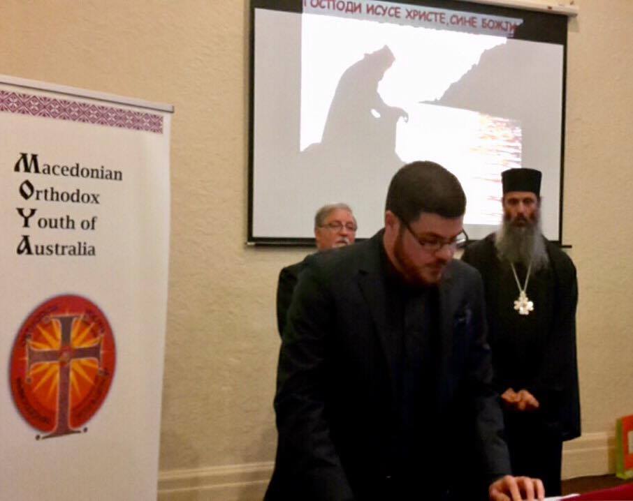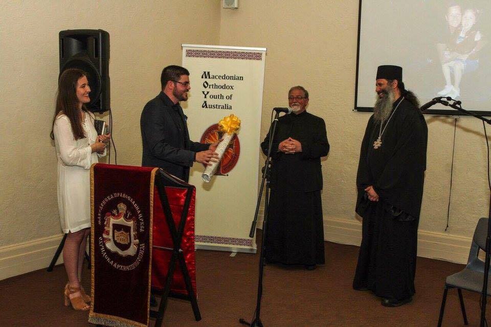 Ми претставува голема чест и задоволство што вечерва сум дел од оваа прослава на 10 годишниот јубилеј на Македонската Православна Младина на Австралија, датум кој не навраќа кон историјата, но и не упатува кон иднината. На прагот сме од уште една календарска година. Како луѓе, природно е нашиот ум да се упати кон тајната на времето: старото време му отстапува место на новото; минатото ја среќава иднината. Како православни христијани, пак знаеме дека новото време, односно Новата календарска година нема ништо ново, освен едно, а тоа е Господ Исус Христос, Кој е вечно нов и вечно ист – и вчера, и денес и утре!