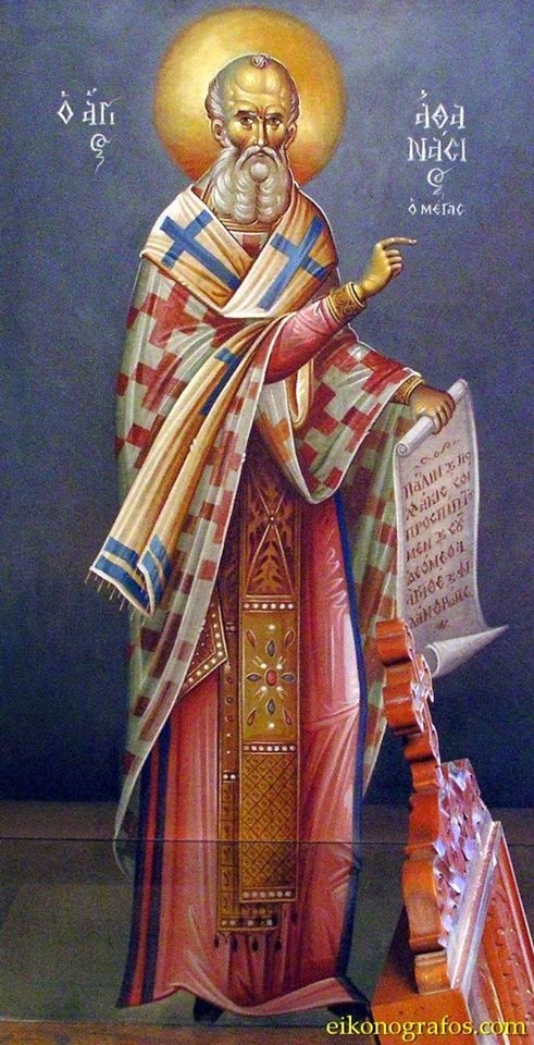 Роден во Александрија 296 година. Од детството наклонет кон духовниот призив. Беше ѓакон кај архиепископот Александар и го придружуваше својот архиепископ на Првиот Вселенски Собор во Никеја. На овој Собор многу се прослави со неговата ученост, благочестие и ревност за Православието. Многу придонесе за побивањето на Ариевата ерес и за утврдувањето на Православието. Го напиша Симболот на Верата кој на Соборот беше усвоен. По смртта на Александар, Св. Атанасиј беше избран за архиепископ Александриски. Во архиепископскиот чин остана над четириесет години, иако не беше цело време на архиепископскиот престол. Речиси сиот живот беше гонет од еретиците. Од царевите најмногу го гонеа: Констанциј, Јулијан и Валент; од епископите Евсевиј Никомидиски со уште мнозина други; а од еретиците Ариј и неговите следбеници. Беше принуден да се крие од гонителите дури и во бунар, во гроб, по приватни куќи, по пустини. На двапати бегаше во Рим. Дури пред смртта едно време проживеа мирно како добар пастир сред своето стадо, коешто вистински го љубеше. Мал е бројот на светителите што се толку клеветени и толку злосторнички гонети како Св. Атанасиј. Но неговата голема душа најпосле излезе победоносна од сета таа долготрајна и страшна борба. За совет, утеха и морална потпора често одеше кај Свети Антониј, кого го почитуваше како свој духовен отец. Човекот којшто ја формулираше најголемата вистина мораше и да пострада за таа вистина, додека Господ не го упокои во Своето Царство овој Свој верен раб, во 373 година.