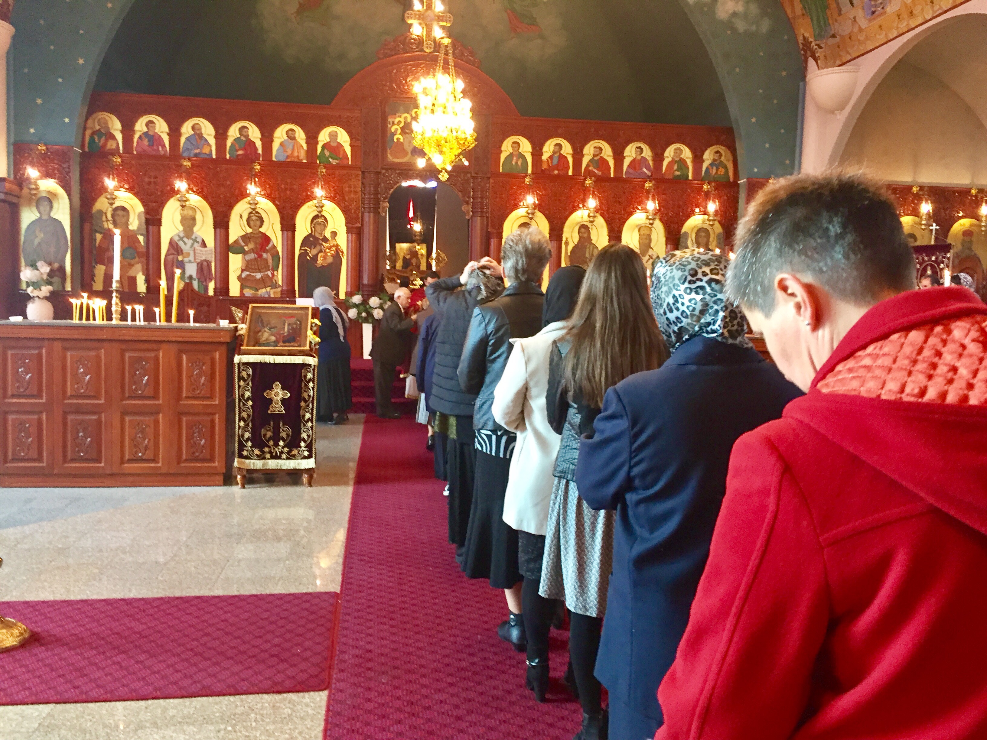 На . 18. 06. 2017 година, во 2-та Недела по Педесетница, кога го празнуваме споменот на свети свештеномаченик Доротеј, епископ Тирски, преподобен Теодор Пустиник, преподобен Анувиј и на блажениот Игор, кнез Черниговски и Киевски, во црковната општина „Свети Георгиј и Пресвета Богородица“ во Епинг, старешината на храмот, јерејот Климент Станковски служеше Света Златоустова Литургија.
