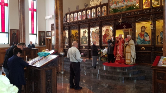 На 28. 08. 2017 година, кога го празнуваме празникот Успение на Пресвета Богородица (Голема Богородица), вo црковната општина „Свети Димитриј Солунски“ – Волонгонг, протојереј – ставрофор Љубомир Милошоски во сослужение со старешината на храмот, протојерејот Александар Ивановски служеше Света Златоустова Литургија.