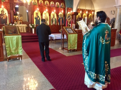 На 15. 05. 2017 година, кога го празнуваме споменот на свети маченици Еспер, Зоја, Киријак и Теодул; + Пренос на моштите на свети Атанасиј Велики; светите маченици Борис и Глеб, во црковната општина „Свети Георгиј и Пресвета Богородица“ во Епинг, старешината на храмот, јерејот Климент Станковски служеше Света Златоустова Литургија.