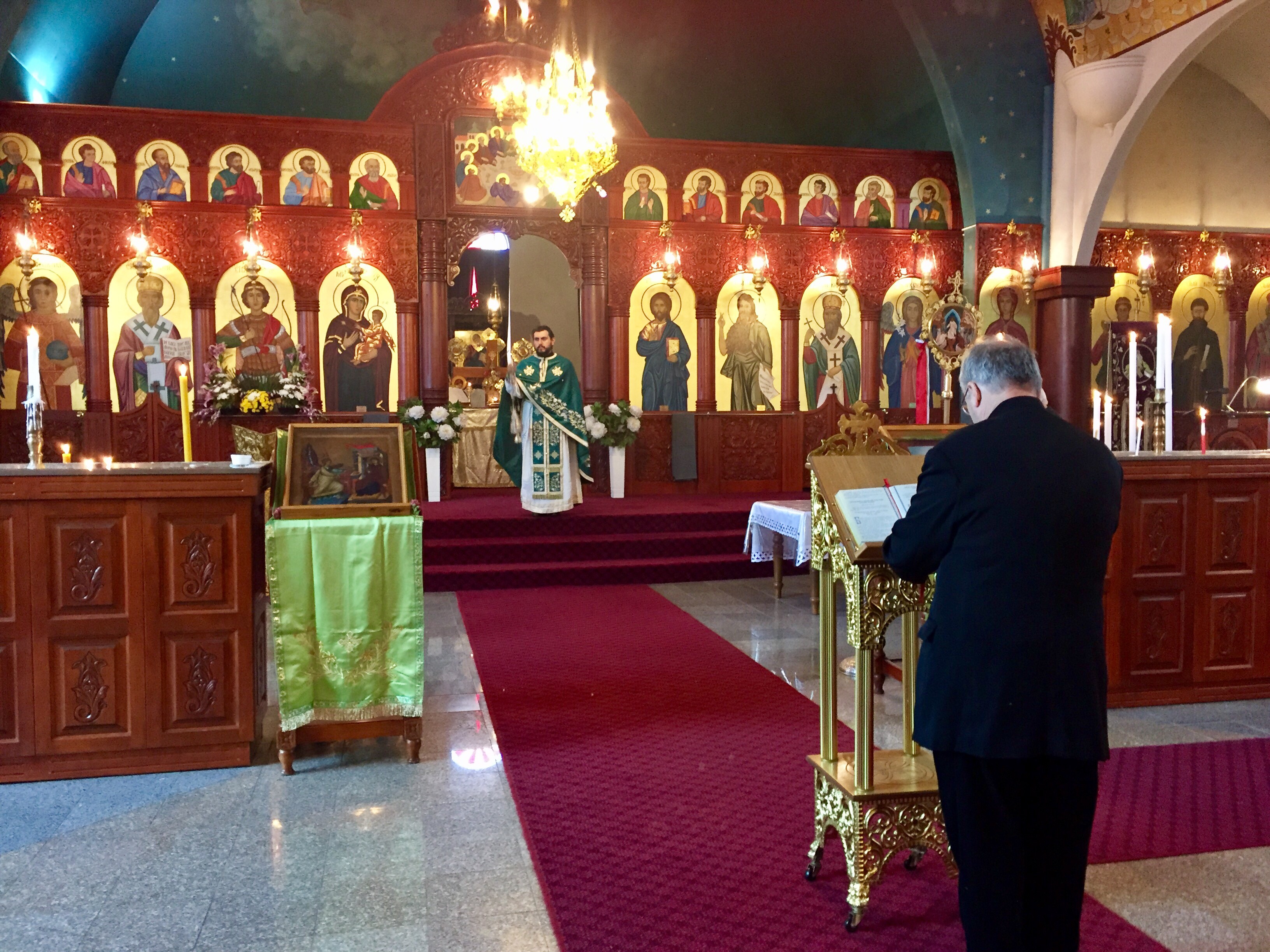 На 15. 05. 2017 година, кога го празнуваме споменот на свети маченици Еспер, Зоја, Киријак и Теодул; + Пренос на моштите на свети Атанасиј Велики; светите маченици Борис и Глеб, во црковната општина „Свети Георгиј и Пресвета Богородица“ во Епинг, старешината на храмот, јерејот Климент Станковски служеше Света Златоустова Литургија.