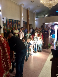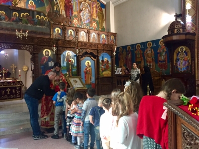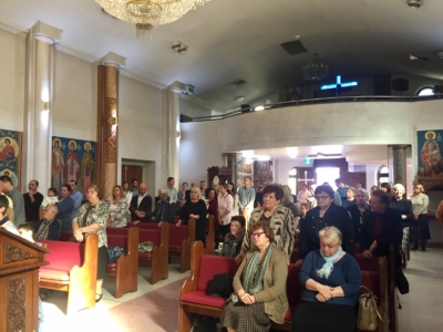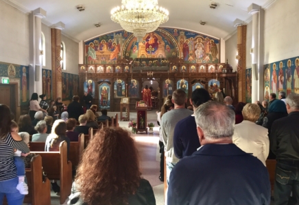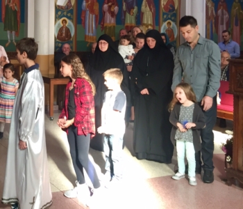 На 21. 05. 2017 година, во 6-тата Недела по Воскресение (на Слепиот), кога го празнуваме споменот на светиот апостол и евангелист Јован; преподобниот Арсениј и на света Емилија, во црковната општина „Света Петка“ во Рокдејл, игуменот Гаврил (Галев) служеше Света Златоустова Литургија.