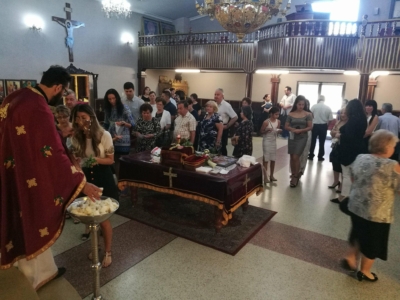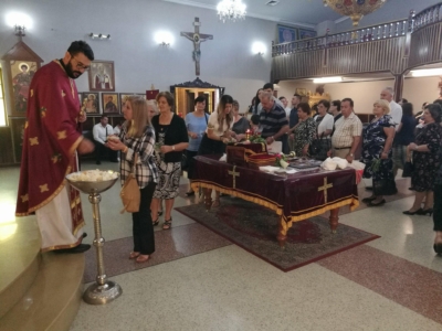 Пред започнувањето на Литургијата, според типикот на светата православна црква, насреде храмот беше изнесен светиот Крст, а на сите кои му се поклонија, им беше доделено гранче босилок.