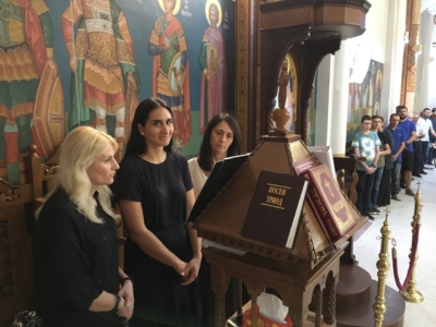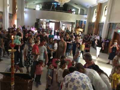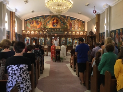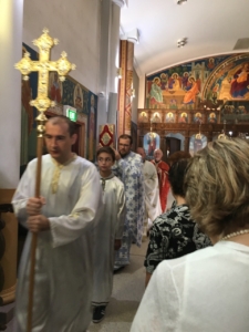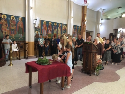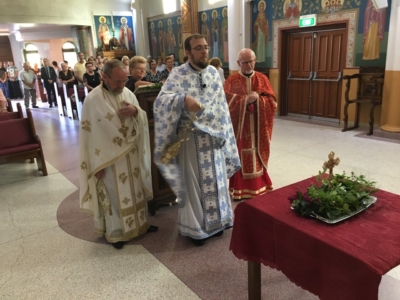 Пред започнувањето на Литургијата, според типикот на светата православна црква, насреде храмот беше изнесен светиот Крст, а на сите кои му се поклонија, им беше доделено гранче босилок.