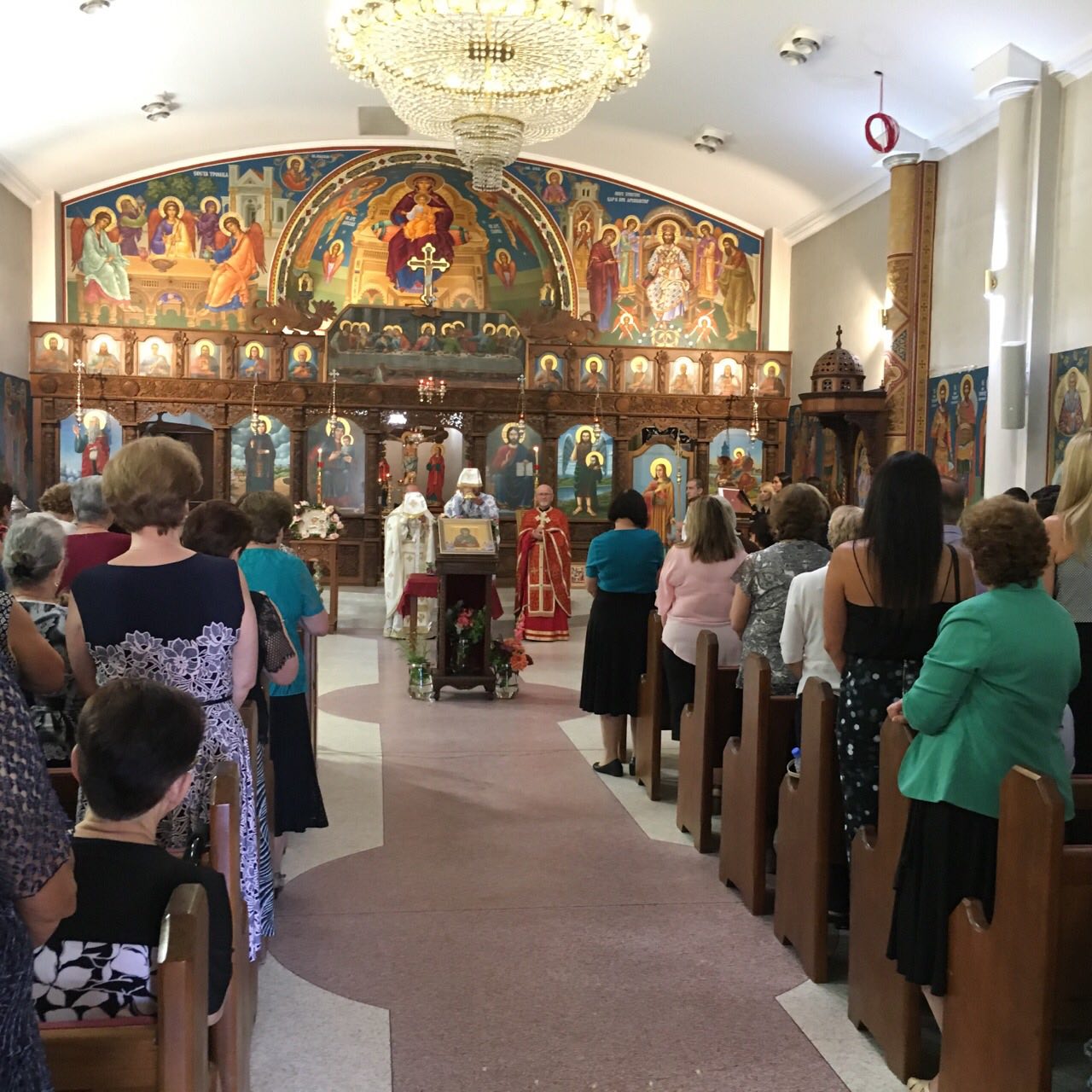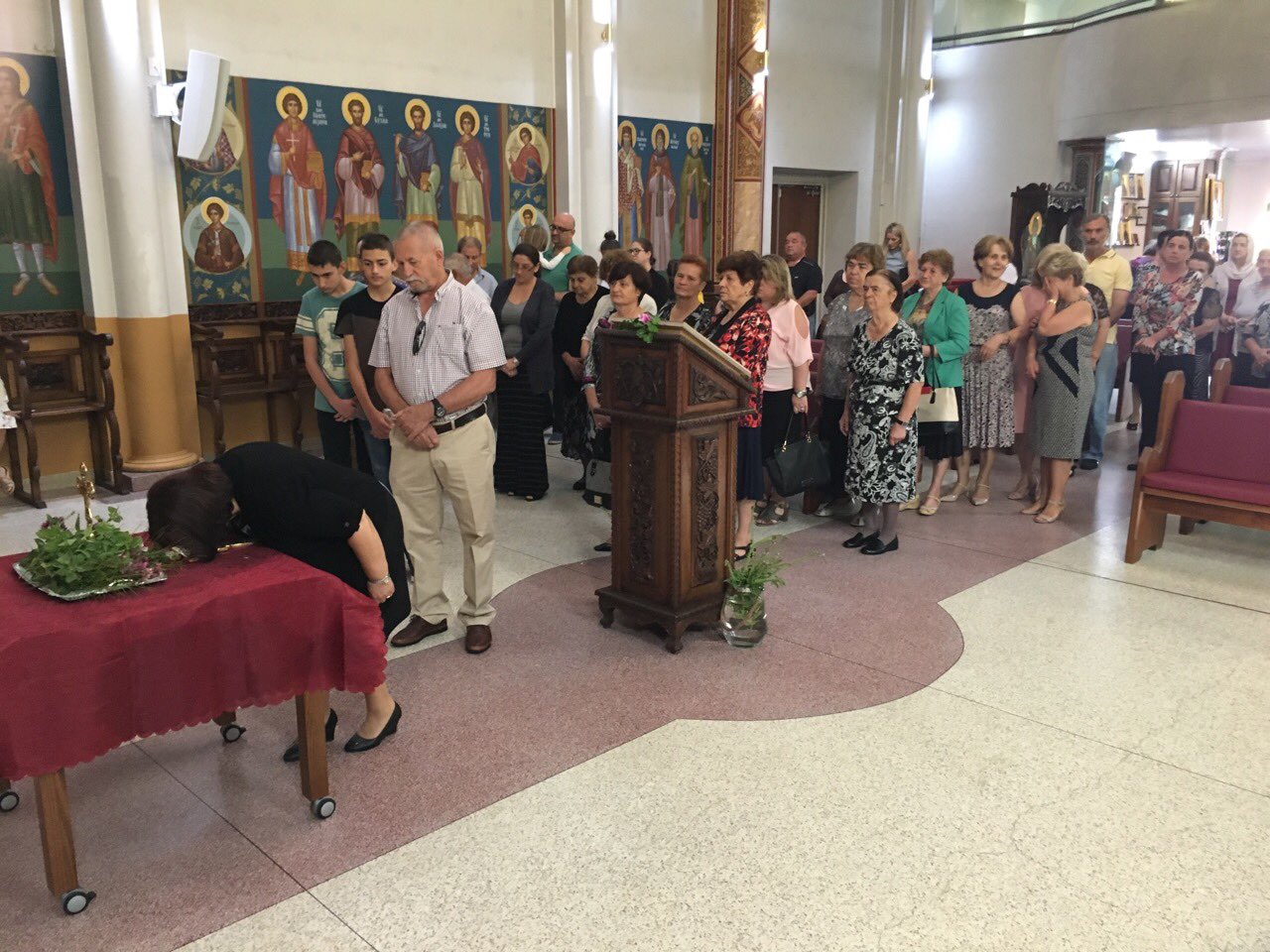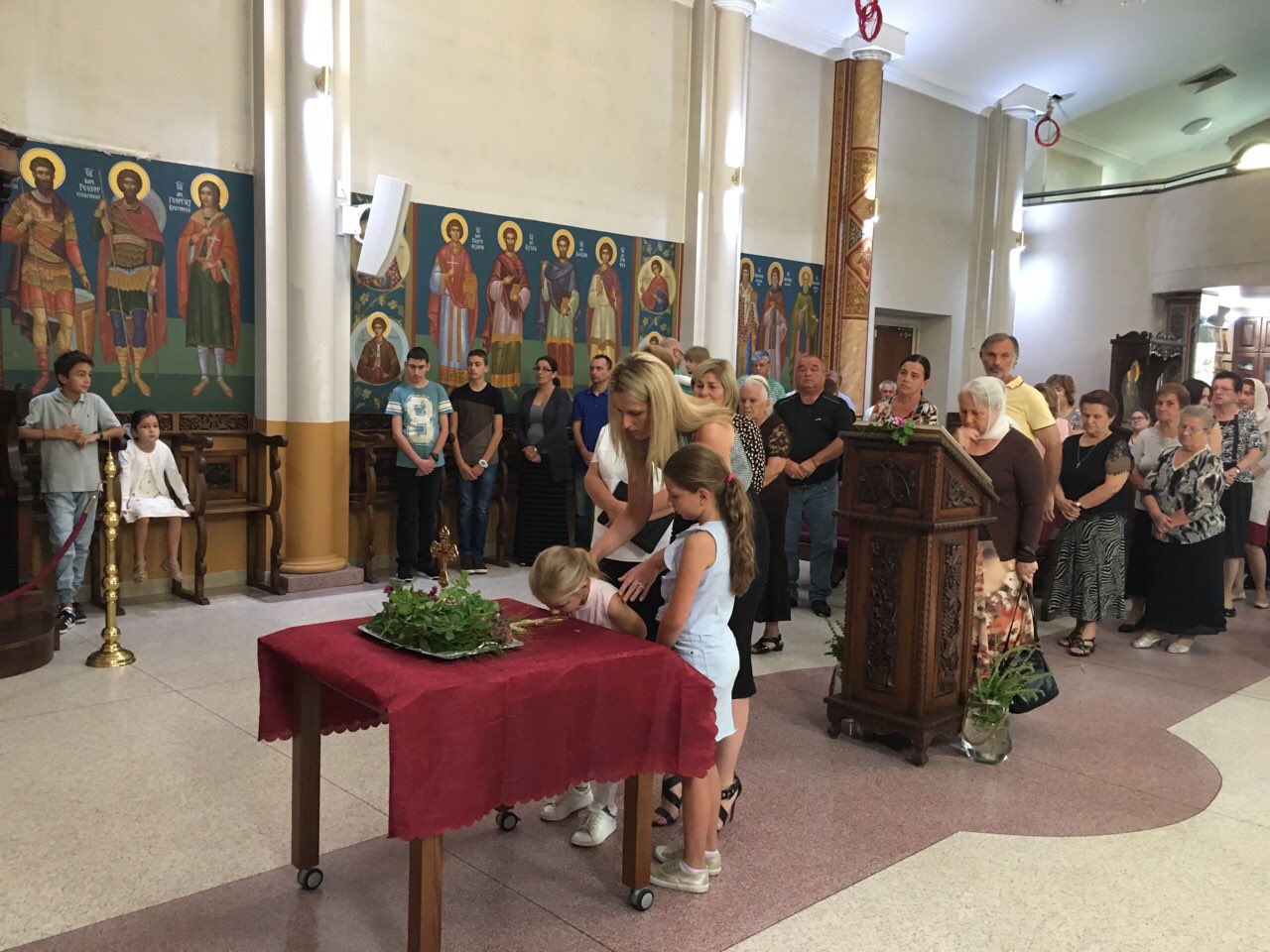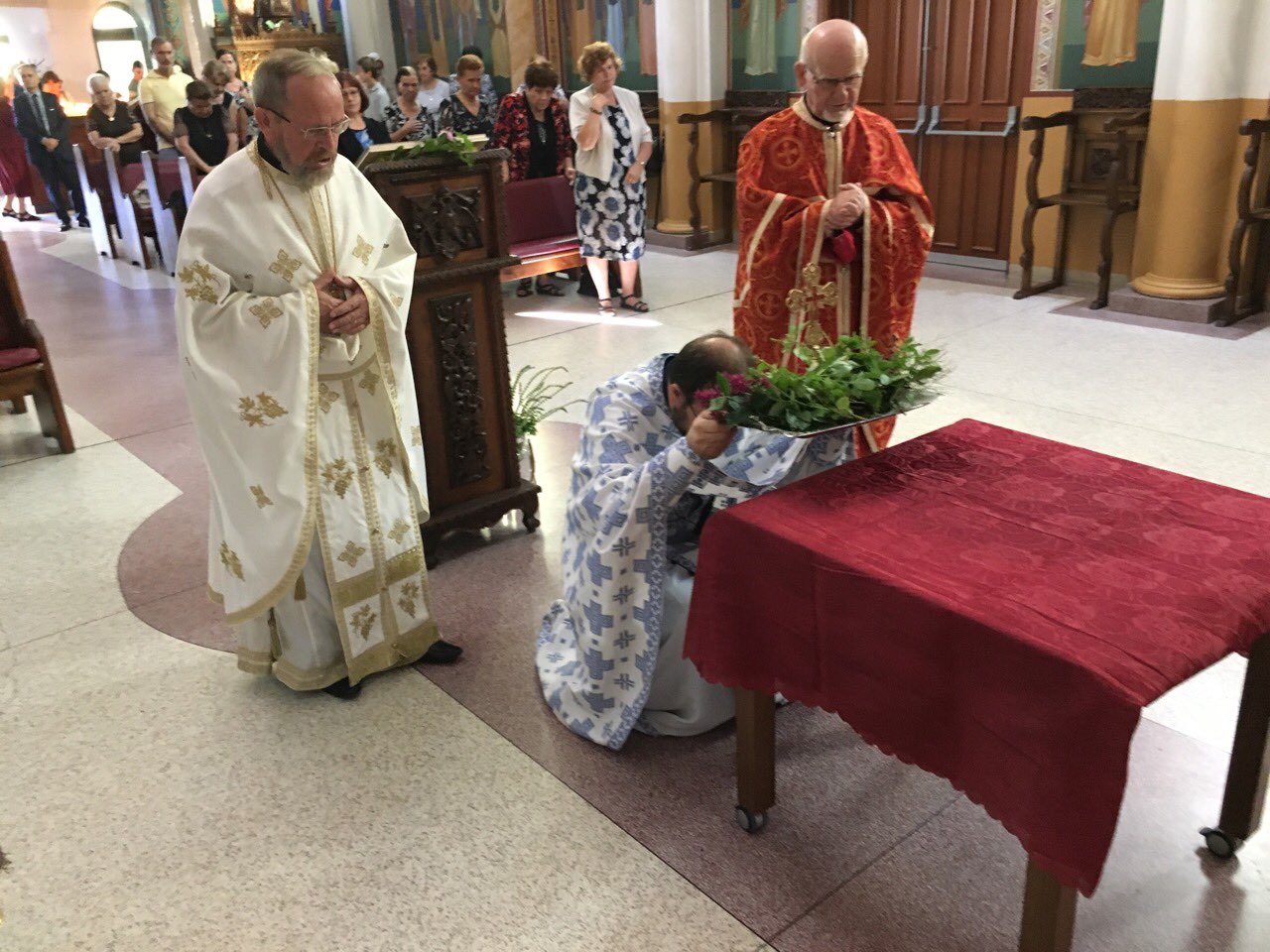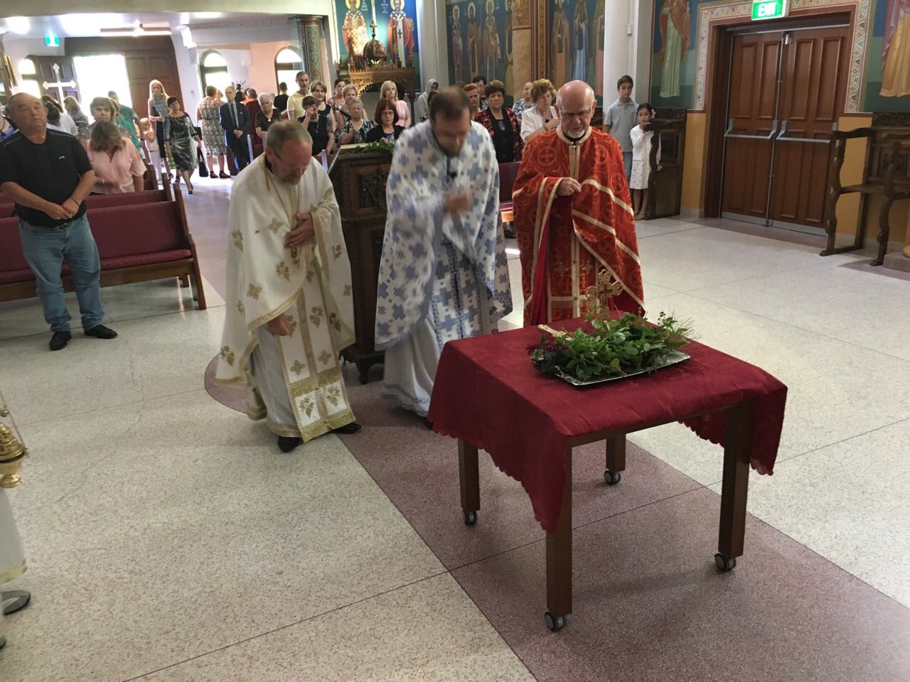 Пред започнувањето на Литургијата, според типикот на светата православна црква, насреде храмот беше изнесен светиот Крст, а на сите кои му се поклонија, им беше доделено гранче босилок.