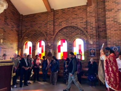 На 31. 12. 2017, во неделата пред Рождеството на Господ Исус Христос (на светите Отци), кога Светата Црква го празнува светиот маченик Севастијан и др, св. Модест Ерусалимски, во манастирот „Свети Климент Охридски“ во Кинг Лејк, игуменот на манастирот, архимандритот Гаврил (Галев) отслужи Света Златоустова Литургија.