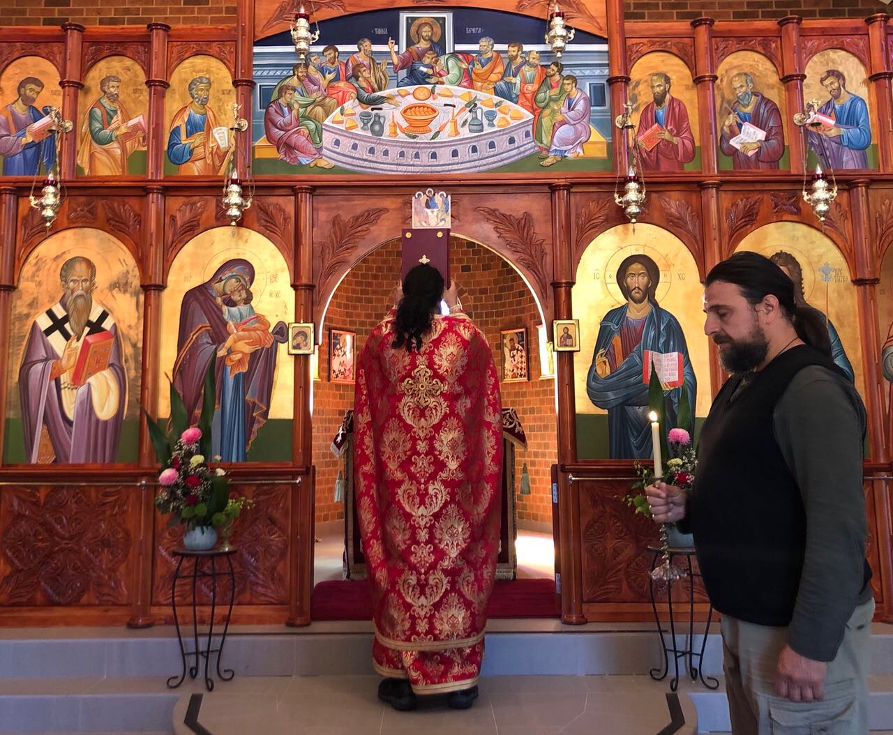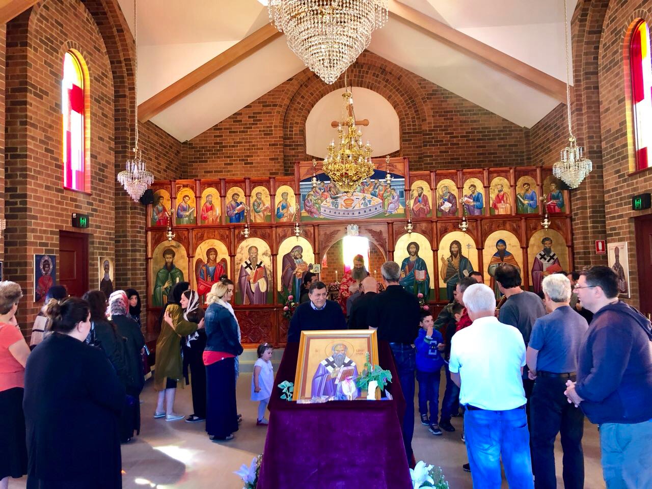 На 31. 12. 2017, во неделата пред Рождеството на Господ Исус Христос (на светите Отци), кога Светата Црква го празнува светиот маченик Севастијан и др, св. Модест Ерусалимски, во манастирот „Свети Климент Охридски“ во Кинг Лејк, игуменот на манастирот, архимандритот Гаврил (Галев) отслужи Света Златоустова Литургија.