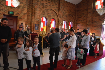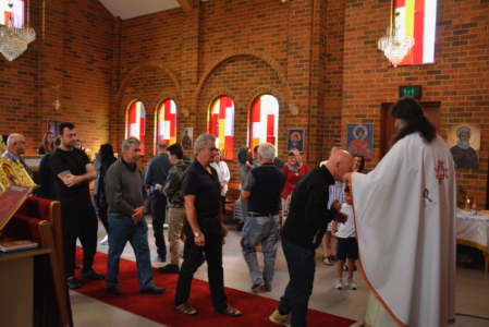 На 11. 02. 2018, во Неделата на Страшниот суд (Месопусна), кога Светата Црква го празнува споменот на Пренос на моштите на Светиот свештеномаченик Игнатиј и Светите маченици Роман, Јаков, Филотеј, Иперихиј, Авив, Јулијан и Паригориј; Преподобен Лаврентиј Печерски, во манастирот „Свети Климент Охридски“ во Кинг Лејк, игуменот на манастирот, архимандритот Гаврил (Галев) отслужи Света Златоустова Литургија.