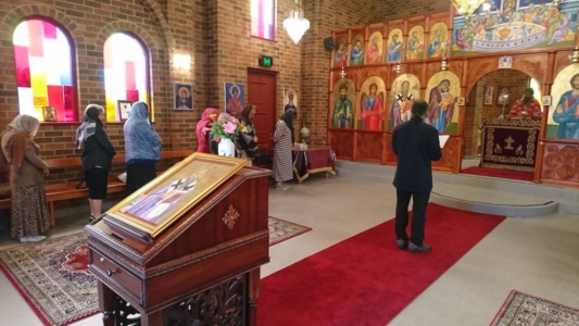 На 18. 03. 2018 година, во четвртата недела од Великиот пост – Недела на свети Јован Лествичник, кога Светата Црква ги празнува Светиот маченик Конон Исавриски; Светиот маченик Конон Градинарот; Преподобен Исихиј Постник; Преподобен Марко Подвижник, во манастирот „Свети Климент Охридски“ во Кинг Лејк, игуменот на манастирот, архимандритот Гаврил (Галев) отслужи Света Василиева Литургија.