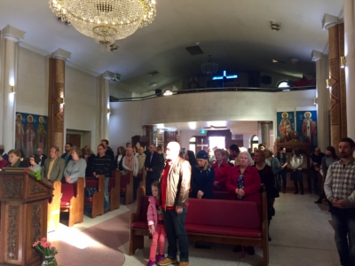 На 30. 07. 2017 година, во 8 – тата недела по Педесетница, кога го празнуваме споменот на светата вмч-ка Марина (Огнена Марија) и на преподобниот Леонид Устнедумски, во црковната општина „Света Петка“ во Рокдејл, игуменот Гаврил (Галев) служеше Света Златоустова Литургија.