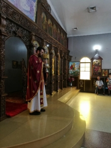 На 18. 02. 2018, во Неделата на Адамовото изгонување од рајот (Сиропусна или Недела на простувањето), кога Светата Црква го празнува споменот на Светата маченичка Агатија; Светата маченичка Теодула; Свети Полиевкт, патријарх Цариградски – Прочка, во црковната општина „Свети Никола“ во Кабрамата, протојерејот – ставрофор Ѓоргија Лапоски во сослужение со старешината на храмот, jерејот Игор Младеновски, служеше Света Златоустова Литургија.