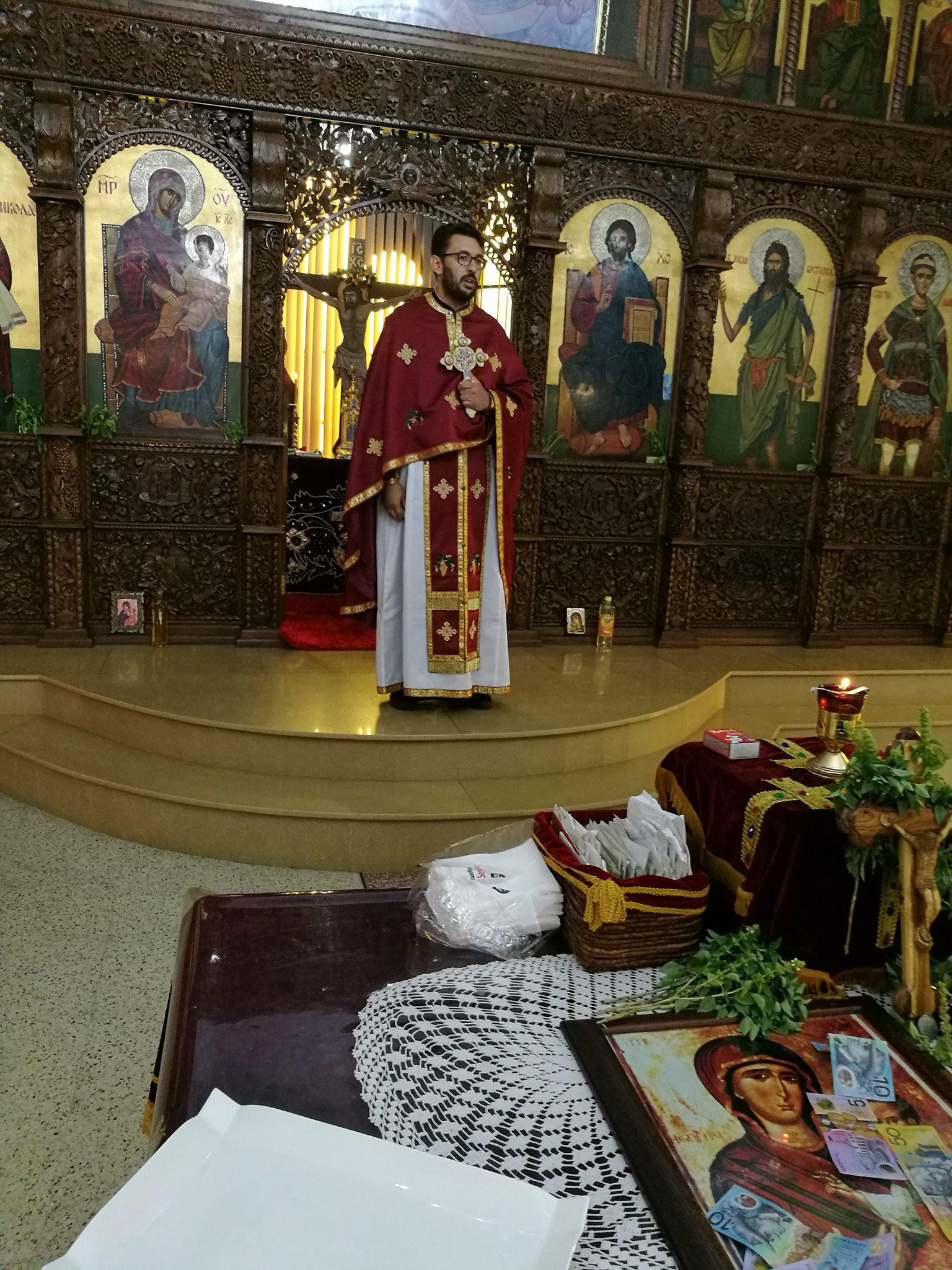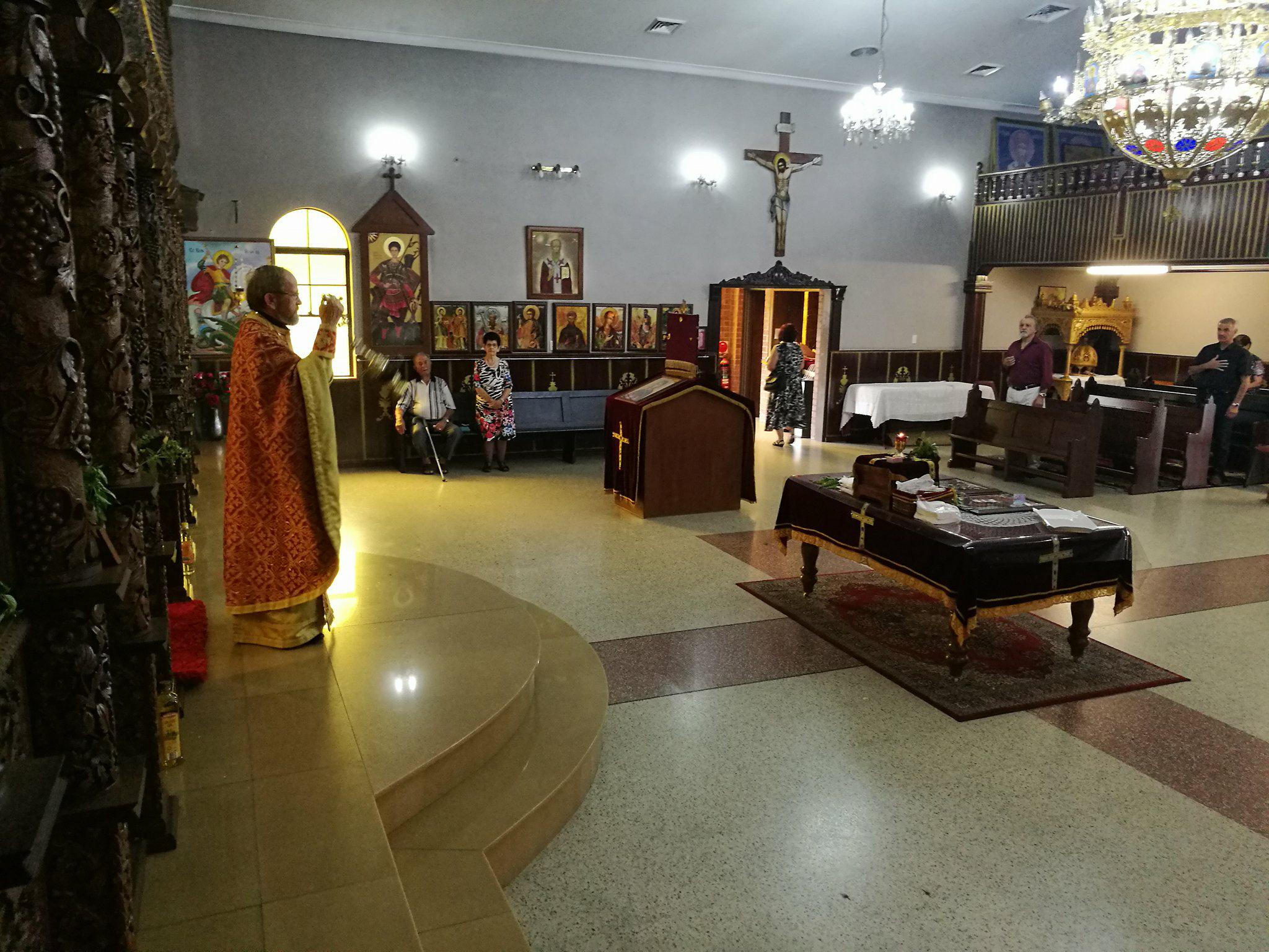 На 18. 02. 2018, во Неделата на Адамовото изгонување од рајот (Сиропусна или Недела на простувањето), кога Светата Црква го празнува споменот на Светата маченичка Агатија; Светата маченичка Теодула; Свети Полиевкт, патријарх Цариградски – Прочка, во црковната општина „Свети Никола“ во Кабрамата, протојерејот – ставрофор Ѓоргија Лапоски во сослужение со старешината на храмот, jерејот Игор Младеновски, служеше Света Златоустова Литургија.