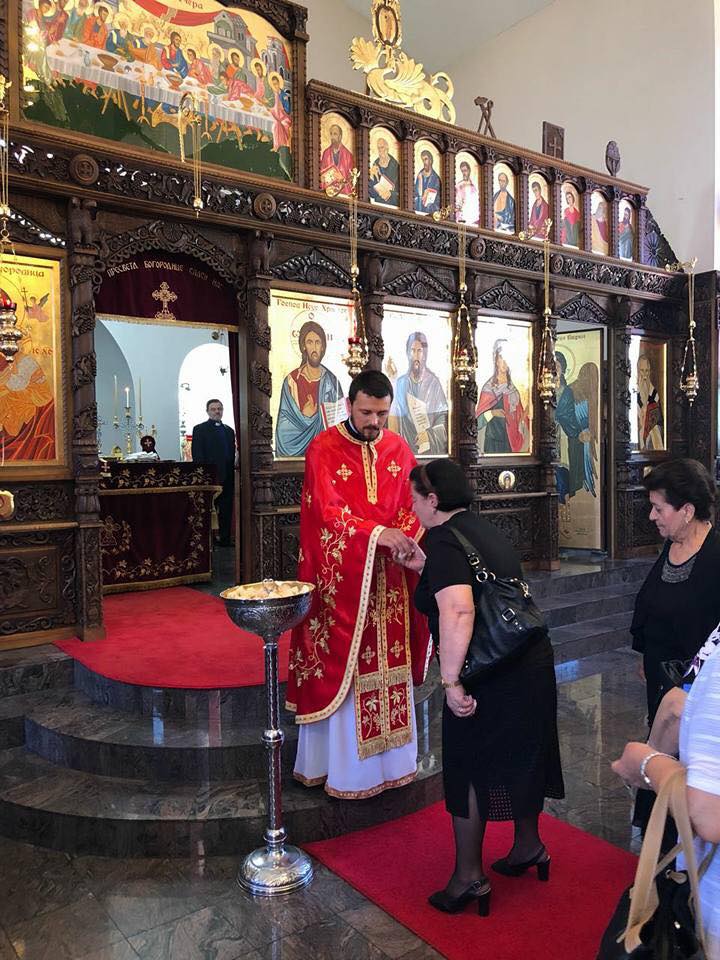 На 05. 01. 2018, кога Светата Црква го празнува Свети Наум Охридски; Светите десет маченици на Крит; Свети Нифонт Чудотворец, вo црковната општина „Свети Димитриј Солунски“ – Волонгонг, старешината на храмот, ерејот Роберт Илијевски служеше Света Златоустова Литургија.