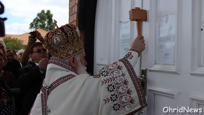 Во 8.30 часот се огласи звукот на камбаната навестувајќи го пристигнувањето на Владиката со придружникот. Мноштво народ беше насобран да прими благослов и да му посака добредојде на надлежниот архиереј, владиката Тимотеј. Владиката, делејќи архипастирски благослов, влезе во црквата, се облече со богослужбените одејанија и го започна осветувањето. Се редеа песнопенија и молитви читани од него, од свештениците присутни на осветувањето и од протоѓаконот, а благочестивиот народ со радосни и весели лица се воодушевуваа од извршените чинодејствија ве текот на осветувањето на храмот. Се изврши и литија – обиколка околу храмот со светите мошти кои потоа беа положени во светиот престол во олтарниот дел на црквата. Се попрска со света водичка и се помажа храмот со свето миро на сите внатрешни ѕидови. Од светите двери се прочита и Повелбата за осветувањето на храмот. Во чест на осветувањето на црквата, претседателот на Управниот Одбор г-дин Владо Трпчевски беше удостоен прв да го запали кандилото што ќе гори на секоја богослужба извршена во црквата во наредниот период. По чинот на осветувањето на црквата, се раскина владичката кошула посебно приготвена за тој чин и се подели на присутниот народ за здравје.