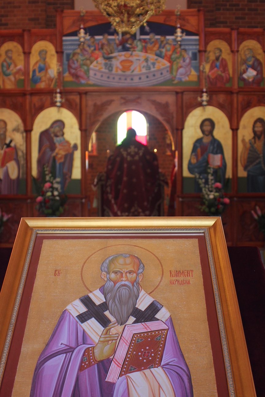 На 23. 12. 2017, кога Светата Црква ги празнува светите маченици Мина, Ермоген и Евграф; Преподобна Ангелина и Св. Јован Деспот; Светиот маченик Гемел; Преподобен Тома Дефуркин, во манастирот „Свети Климент Охридски“ во Кинг Лејк, игуменот на манастирот, архимандритот Гаврил (Галев) во сослужение на протојереј – ставрофор Ефтим Бетински и на ерејот Владо Недески отслужи Света Златоустова Литургија.