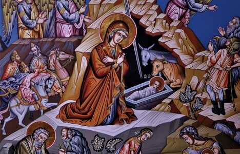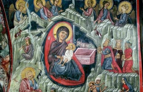 O Christ Our God, You dwelt in a cave, and a manger contains You! Magi and shepherds worshiped You, fulfilling the prophet’s forecasts. Angels marveled and cried out: “Glory to Your condescension, O You, the only Lover of mankind! О, Христе Боже наш, си живеел во пештера, а јасли Те содржи! Ти се поклонија мудреците и пастирите, исполнувајќи ги пророчките прогнози. Ангелите се восхитуваа и извикуваа: „Слава на Твоето снисходење, …