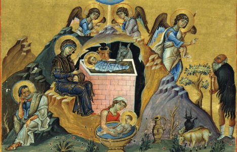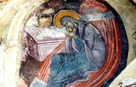 Today the Virgin gives birth to the Transcendent One, and the earth offers a cave to the Unapproachable One! Angels with shepherds glorify Him. The wise men journey with a star, since for our sake the Pre-Eternal God was born as a young Child Дева денес Го раѓа Предсуштествениот, и земјата Му нуди пештера на Непристапниот. Ангелите со пастирите Го славословат, а мудреците со ѕвездата патуваат, оти заради нас се …