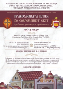 Семинарот ќе се одржи на 23-ти декември (сабота) 2017 година во манастирот „Свети Климент Охридски“ во Кинг Лејк (Macedonian Park National Rd. Kinglake West Vic. 3065), Мелбурн (Викторија).