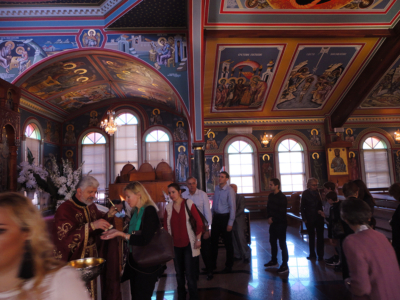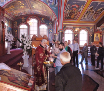 На 04. 06. 2017 година, во Недела на Педесетница, кога го празнуваме празникот Слегување на Светиот Дух – Духовден, како и споменот на светиот маченик Василск, Вториот Вселенски собор, и на светиот праведен Мелхиседек, цар Салимски, во црковната општина „Свети Никола“ во Перт, старешината на храмот, протојереј Станко Јовановски отслужи света Златоустова литургија.