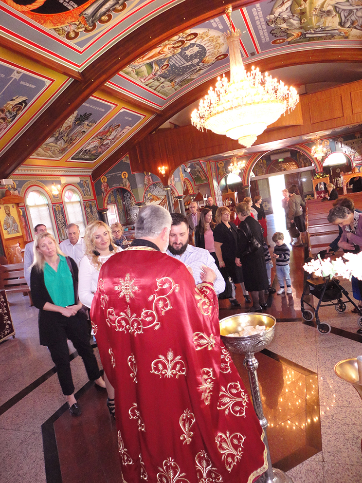 На 04. 06. 2017 година, во Недела на Педесетница, кога го празнуваме празникот Слегување на Светиот Дух – Духовден, како и споменот на светиот маченик Василск, Вториот Вселенски собор, и на светиот праведен Мелхиседек, цар Салимски, во црковната општина „Свети Никола“ во Перт, старешината на храмот, протојереј Станко Јовановски отслужи света Златоустова литургија.