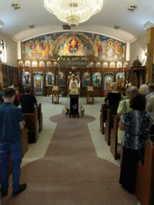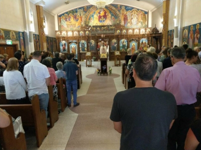 На 17. 12. 2017 година, во 28-тата недела по Педесетница кога го празнуваме споменот на Светата великомаченичка Варвара; Свети Јован Дамаскин; Свети Генадиј, архиепископ Новгородски, во црковната општина „Света Петка“ во Рокдејл, архимандриот Гаврил (Галев) во сослужение на новодојдениот свештеник и старешина на храмот, презвитерот Владо Недески, служеше Света Златоустова Литургија.