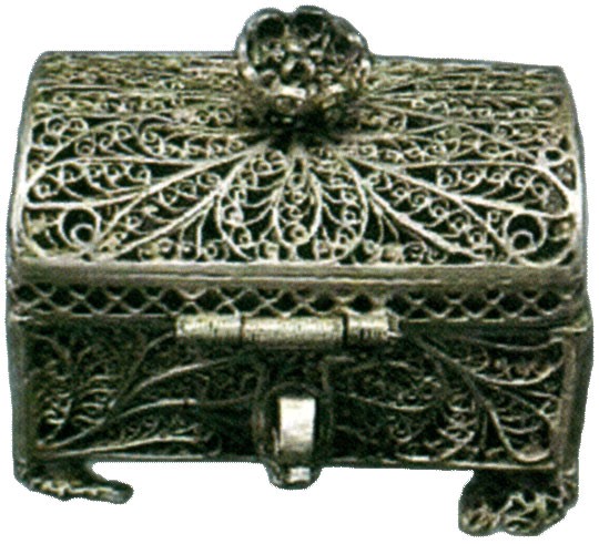 Стана од креветот и, нагрнувајќи ја наметката, се доближи до шкафот. Таму беше сместена семејната кутија во вид на метален посребрен ковчег со свиени филигрански ногарки и со мала клучалка на капакот. Тоа беше семејната реликвија што Пјотр ја доби уште во младоста, на денот на свадбата, од својата покојна баба Татјана Иљинична. На кутијата беше изгравирано: „Со родителски благослов на драгиот Иљоша за денот на неговото свето венчавање. Поседот на Сидоровичи, Киевска Губернија, 1885 г.“.