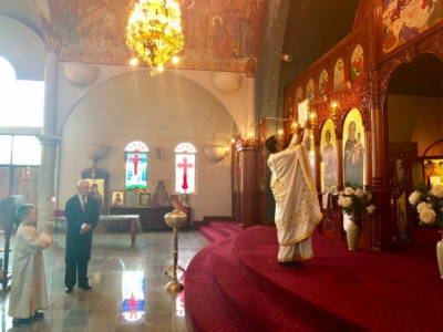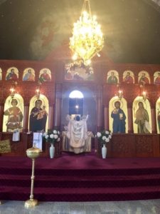 На 08. 01. 2018 година, кога ги празнуваме Собор на Пресвета Богродица; Спомен на бегството во Мисир; Преподобен Еварест; Свети Ефтимиј Исповедник, епископ Сардиски; Преподобен Константин Синадски; Преподобен Никодим Прилепски-Тисмански, во црковната општина „Свети Георгиј и Пресвета Богородица“ во Епинг, старешината на храмот, јерејот Климент Станковски служеше Света Златоустова Литургија.